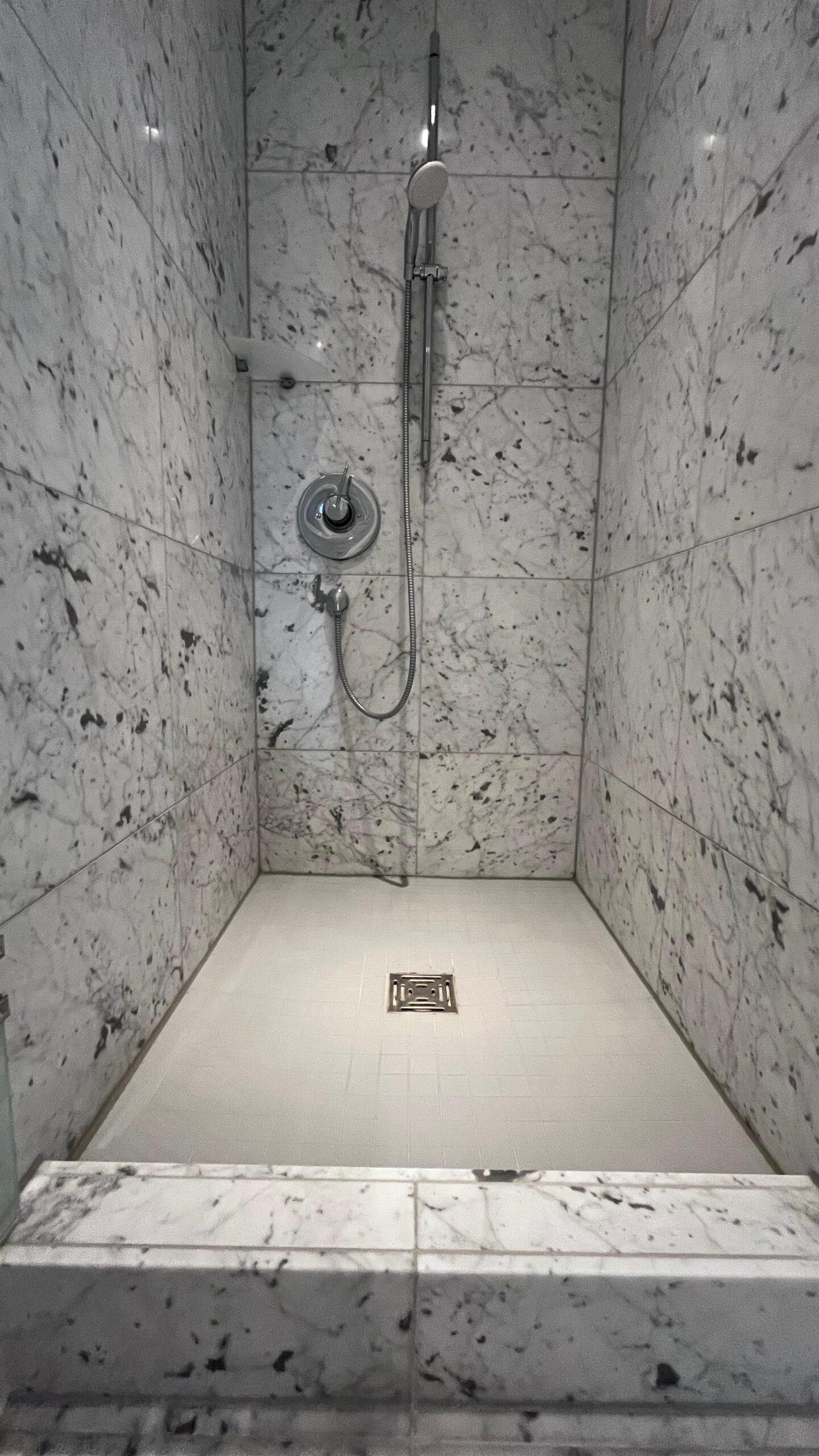 In einem unserer aktuellen Projekte haben wir ein Badezimmer mit großformatigen Marmorfliesen saniert und imprägniert. Nach der fachgerechten Reinigung des Marmors folgte ein wichtiger Schritt: die Imprägnierung.