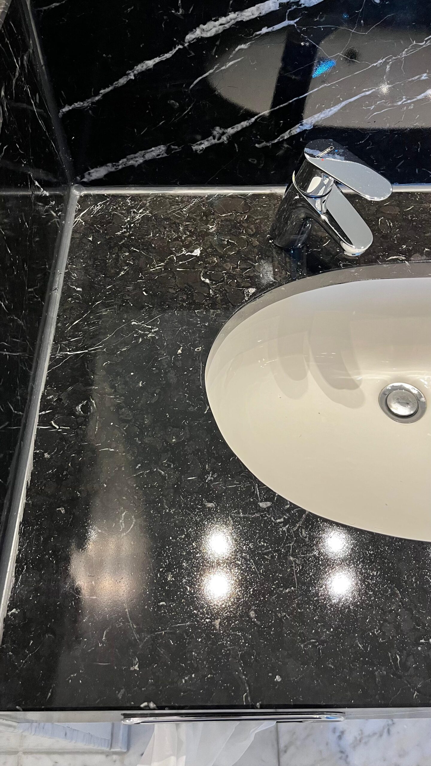 Im Anschluss haben wir den Marmor mit einer hochwertigen Imprägnierung behandelt. Diese dringt tief in den Stein ein, bildet jedoch keinen Film auf der Oberfläche – der Marmor bleibt atmungsaktiv und behält seine natürliche Optik. Die Imprägnierung schützt den Stein effektiv vor Feuchtigkeit, Verfärbungen und dem Eindringen von Schmutz.